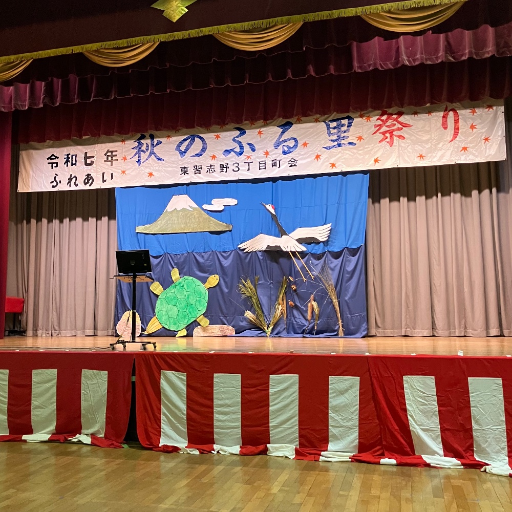 令和7年10月4日(土)17時より、東習志野小学校体育館にて「東習志野三丁目町会秋のふる里祭り」が開催されました。舞台では、スーパーキッズによるジャズダンス、ユトリシアの皆様によるフラダンス、東習志野小学校吹奏楽部の演奏、各町会有志によるカラオケ、大抽選会などが催され、大変な賑わいを見せました。翌5日(日)午前9時からは、子ども神輿や山車の町内巡行が開始され、最終到着地点である自治会館前では餅つきも行われました。地域の絆を深める一日となりました。(東習志野三丁目町会)