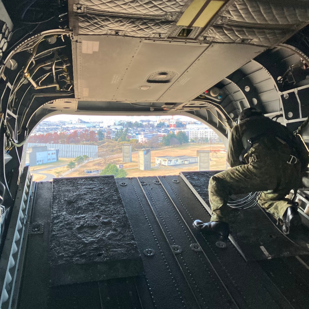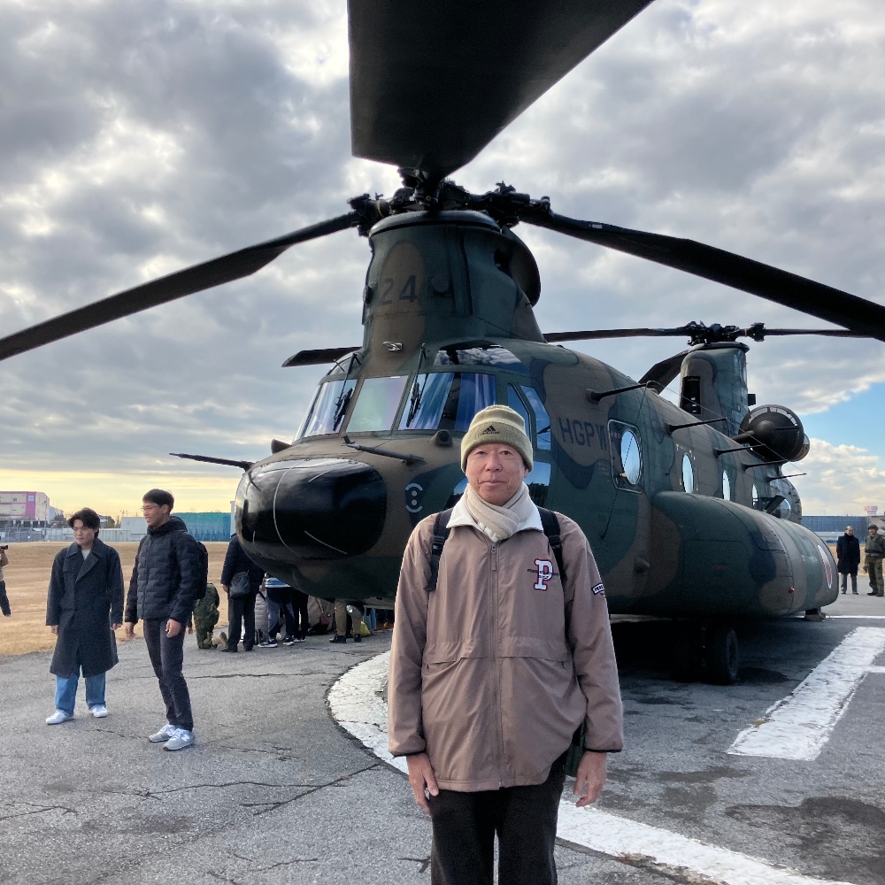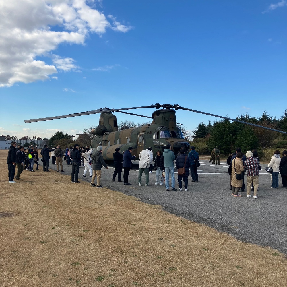 令和7年12月6日(土)9時30分から、陸上自衛隊のヘリコプターによる体験搭乗に参加しました。陸上自衛隊唯一の空挺団「第一空挺団」(通称「落下傘部隊」)が、部隊の広報活動の一環として、近隣各市(船橋市・習志野市・八千代市)の自衛隊協力会会員や周辺自治体・市民から選出されたモニターなどを対象に、体験搭乗を実施しました。自衛隊活動への理解を深めるため、毎年1回程度、60~100人程度が招待されています。(習志野市自衛隊協力会)
