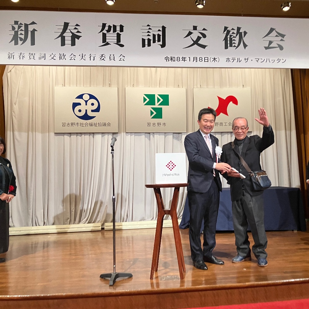 令和8年1月8日(木)14時より、「令和8年習志野市新春賀詞交歓会」が開催されました。本交歓会は、習志野市、習志野商工会議所、習志野市社会福祉協議会の3団体が主催しております。習志野文化ホールの改築に伴い、会場を幕張新都心のホテル・ザ・マンハッタンに変更し、今回が3回目の開催となります。(総務部・総務課)
