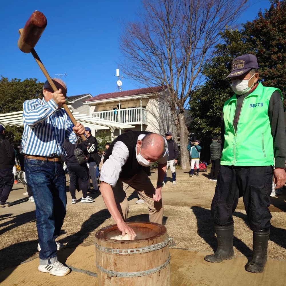 令和8年1月12日(月)午前10時から、「東習志野8丁目町会餅つき大会」が開催されました。約35キログラムのもち米を1時間半ほどでつき上げ、参加者はつきたてのお餅を持ち帰りました。また、成人の日だったため、今年度に成人となる新成人も習志野市主催の「二十歳の門出式」の前に参加していました。餅つき大会の終了後、新年会が開催され、地域の皆様との交流を深めました。(東習志野8丁目町会)