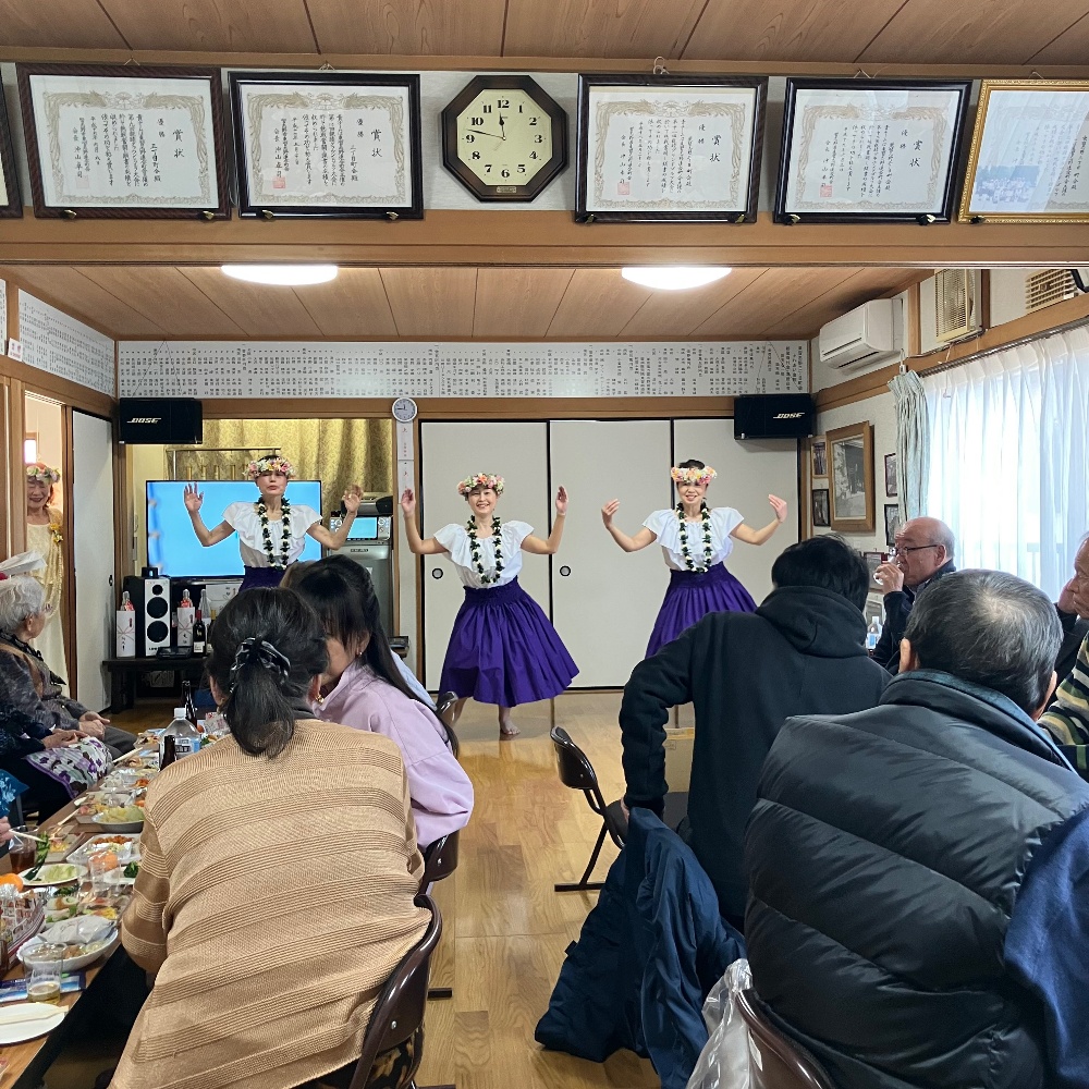 令和8年1月18日(日)11時より、東習志野三丁目町会の新年会がふれあい会館で開催されました。宮本市長をはじめとする来賓と町会員47名が参加し、盛大に行われました。第二部では、参加者による和踊り『きよしのズンドコ節』、詩吟、フラダンスが披露され、その後、ビンゴゲーム、お年玉抽選会、カラオケと続き、楽しいひと時を過ごしました。なお、翌日は宮本市長の誕生日で、可愛らしい参加者からお花が贈られました。(東習志野三丁目町会)