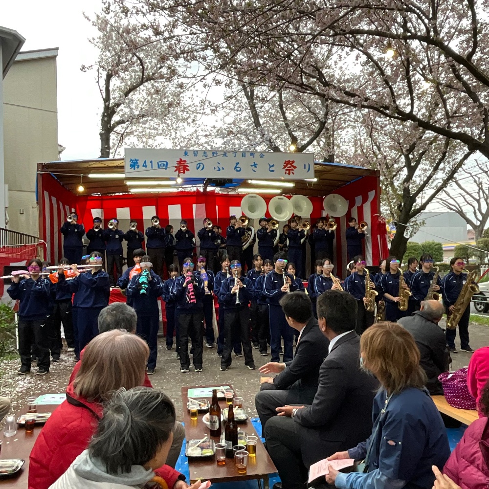 令和8年4月4日(土)16時より、「東習志野5丁目町会第41回春のふるさと祭り」が開催されました。本年度の春祭りは、夕刻より雨天の予報がございましたが、幸いにも降雨はなく、桜が満開の状態で開催することができました。また、習志野第四中学校吹奏楽部の皆様にご出演いただき、素晴らしい演奏を披露していただきました。(東習志野5丁目町会)