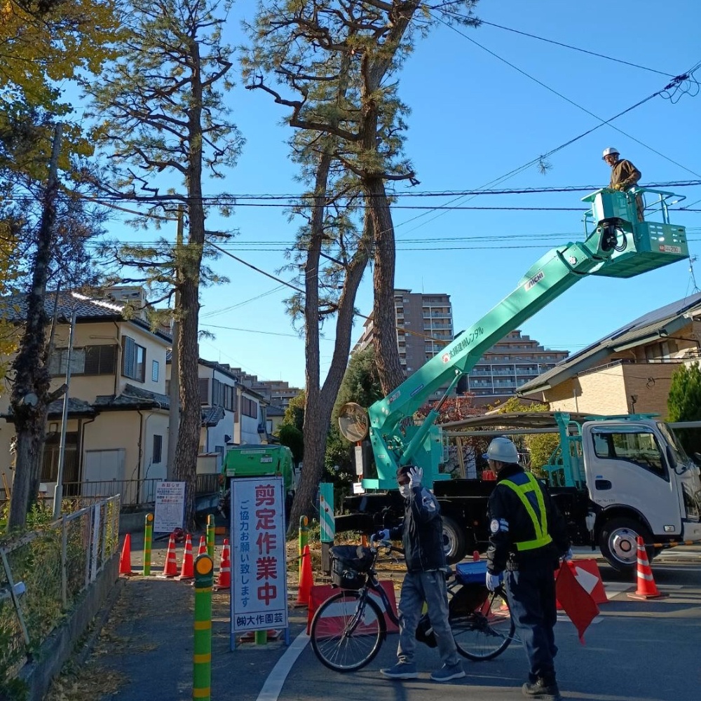 令和7年11月17日(月)から12月6日(土)までの期間で、文教通り沿いの松並木の剪定作業が開始されました。本作業は、昨年度の作業において未実施であった部分の剪定を実施するもので、順調に進捗しており、まもなく完了する見込みです。令和5年8月に地元住民より提出された「文教通り沿いの松並木の剪定に関する陳情」につきましては、約2年の歳月を経て解決に至りました。(東習志野三丁目町会)